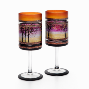 Ručně foukané sklenice na likér dekorované barvami a kovem. Obsah sklenic je 60 ml. Výrobek je autorsky signován, opatřen certifikátem originality.