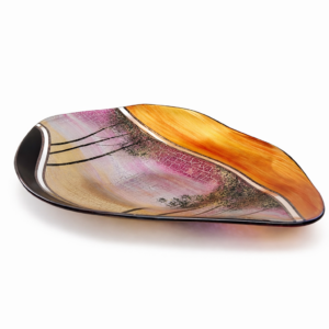 Talíř je vysoký 8cm, velikost 42 x 31cm. Balený v krabici s firemním potiskem. Jedna se o dekorativní sko. Není vhodné do myčky.