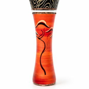 Ručně foukaná váza dekorovaná barvami a kovem. Výrobek je opatřen autorským podpisem a certifikátem originality.