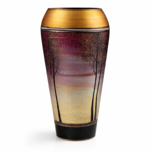 Váza  dekorováná barvami a kovem. Výrobek je autorsky signován, opatřený certifikátem originality.