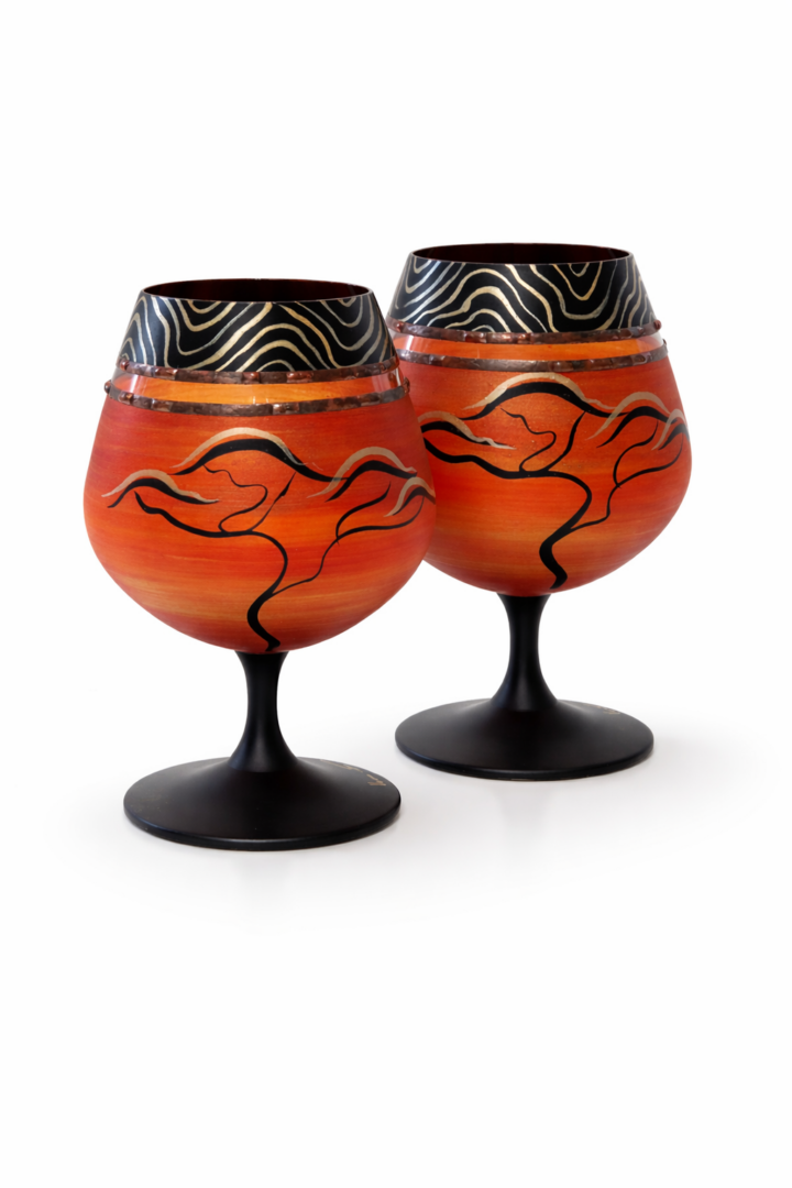 Sklenice na koňak ,ručně dekorované barvami a kovem. Výrobek je autorsky signován, opatřen certifikátem originality.