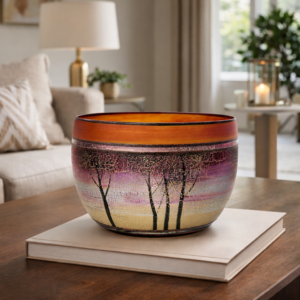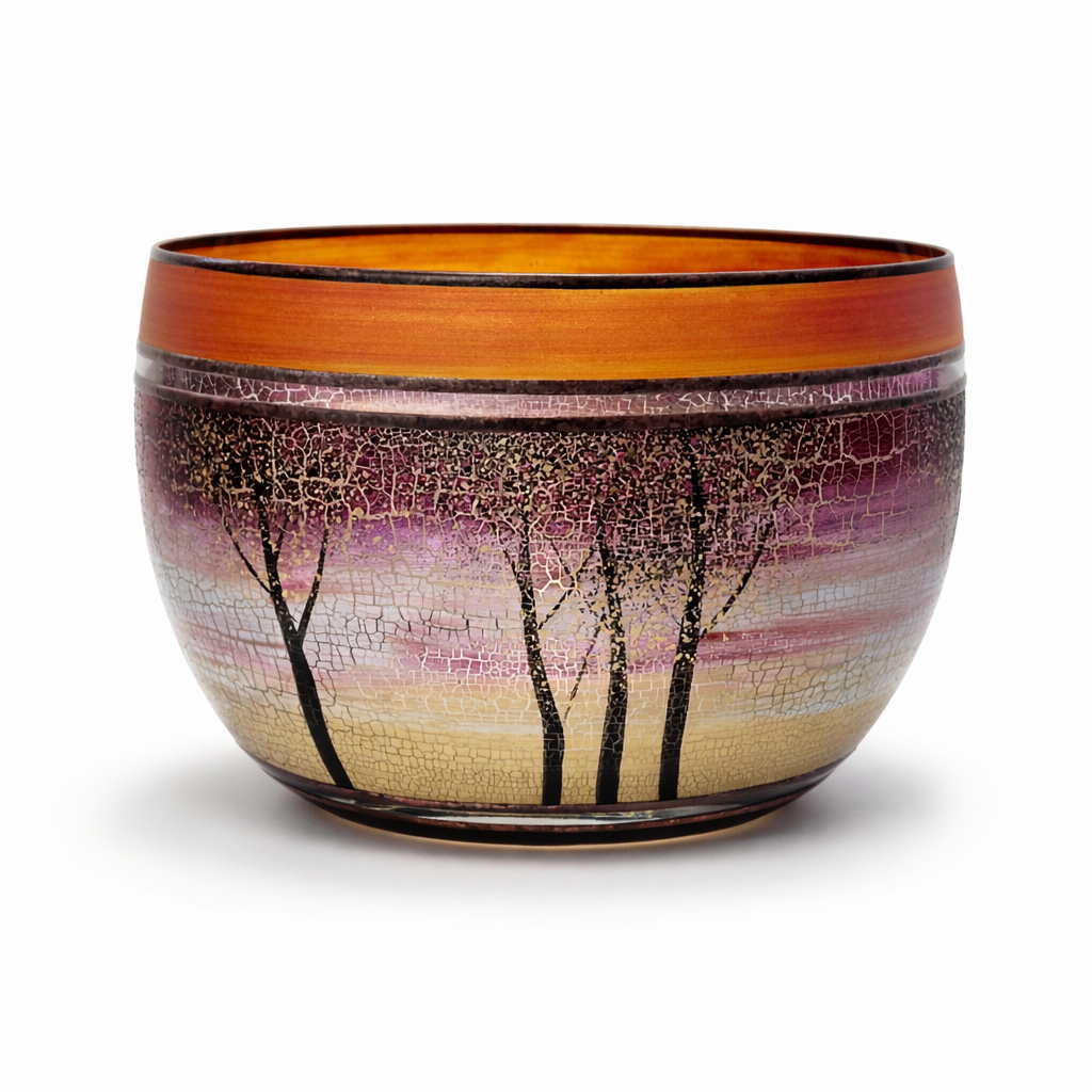 Ručně foukaná miska, dekorováná kovem a barvami . Výrobek je autorsky signován, opatřený certifikátem originality.