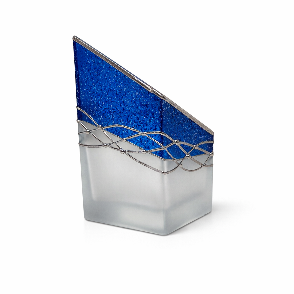 Ručně foukaná váza , dekorováná kovem a barvami . Výrobek je autorsky signován, opatřený certifikátem originality.