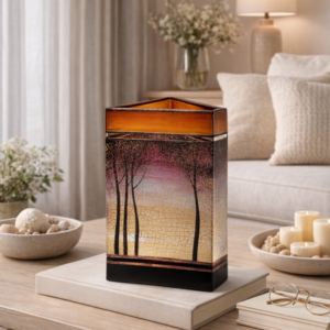 Ručně foukaná váza dekorovaná barvami a kovem .. Signována autorským podpisem. K výrobku je přiložen certifikát původu. Dekorativní sklo.
