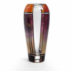 Ručně foukaná váza, dekorováná barvami a kovem. Výrobek je autorsky signován, opatřený certifikátem originality.