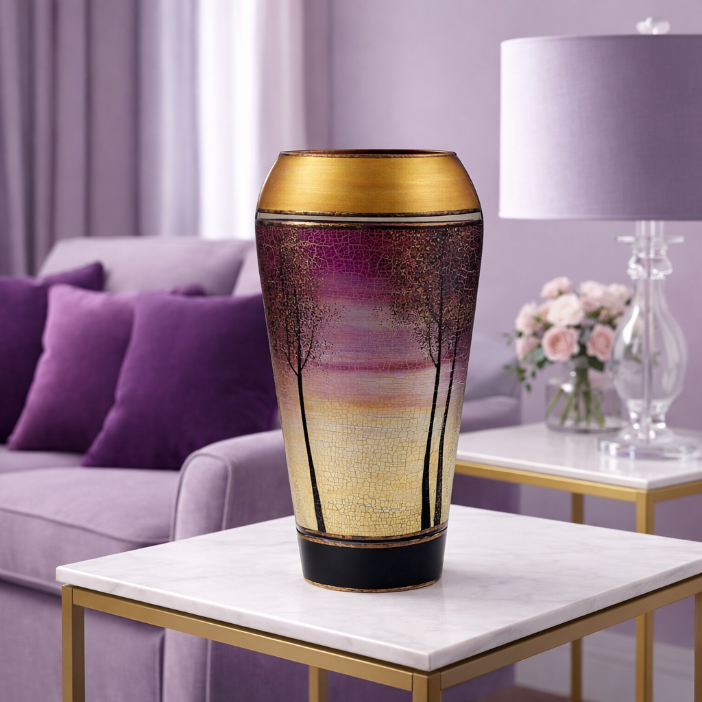 Váza dekorovaná malbou a kovem. Výrobek je opatřen podpisem, a certifikátem originality. Zabalen do krabice s firemním potiskem.