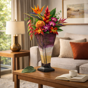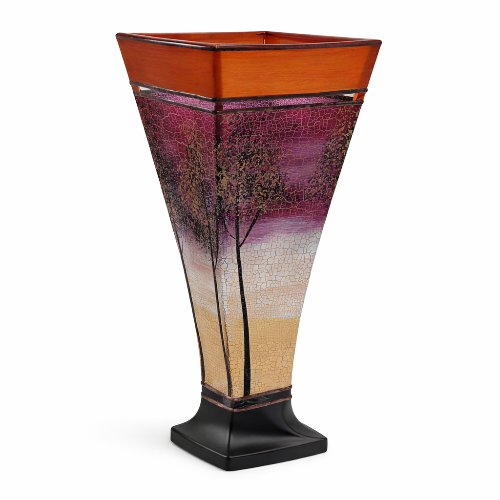 Výška vázy je 38cm. Baleno v krabici s firemním potiskem. Dekorativní sklo. Nevhodné pro mytí v myčce.
