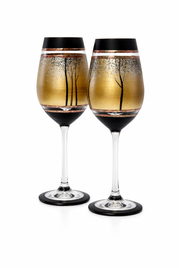 Ručně dekorováná sklenice kovem a barvami . Výrobek je autorsky signován, opatřený certifikátem originality.