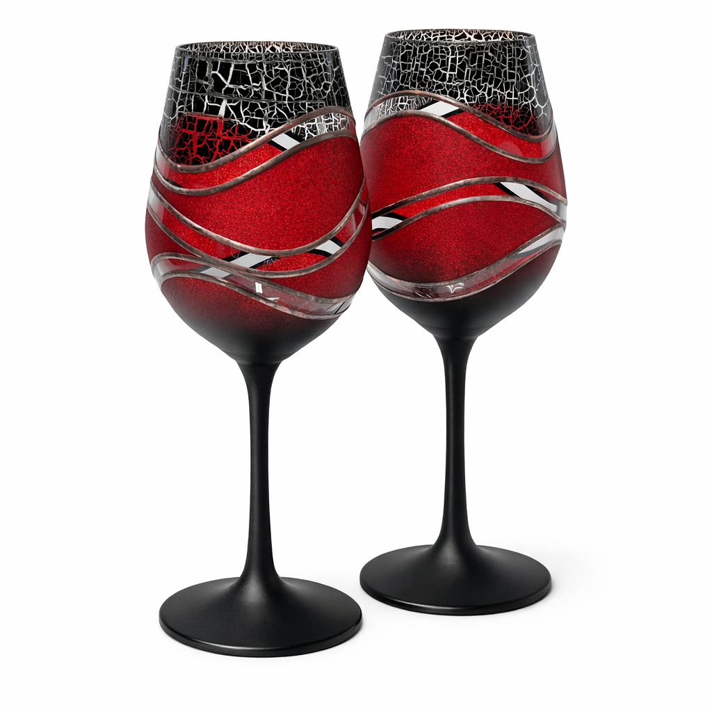 Sklenice na bílé víno,ručně dekorované barvami a kovem. Výrobek je autorsky signován, opatřen certifikátem originality.