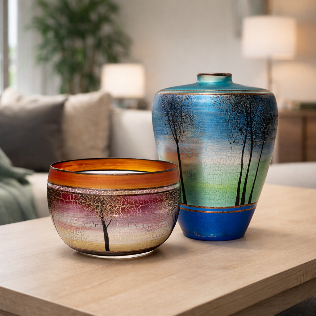 Jedná se o dekorativní sklo. Baleno do krabice s firemním potiskem. Nevhodné pro mytí v myčce.