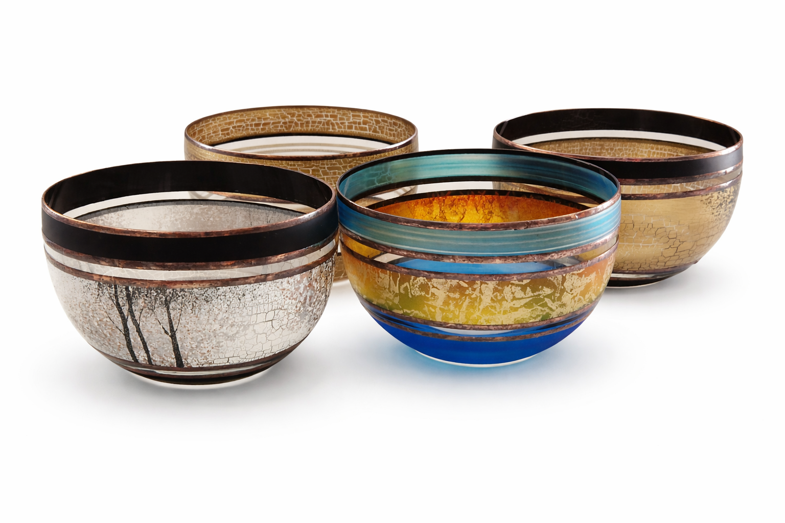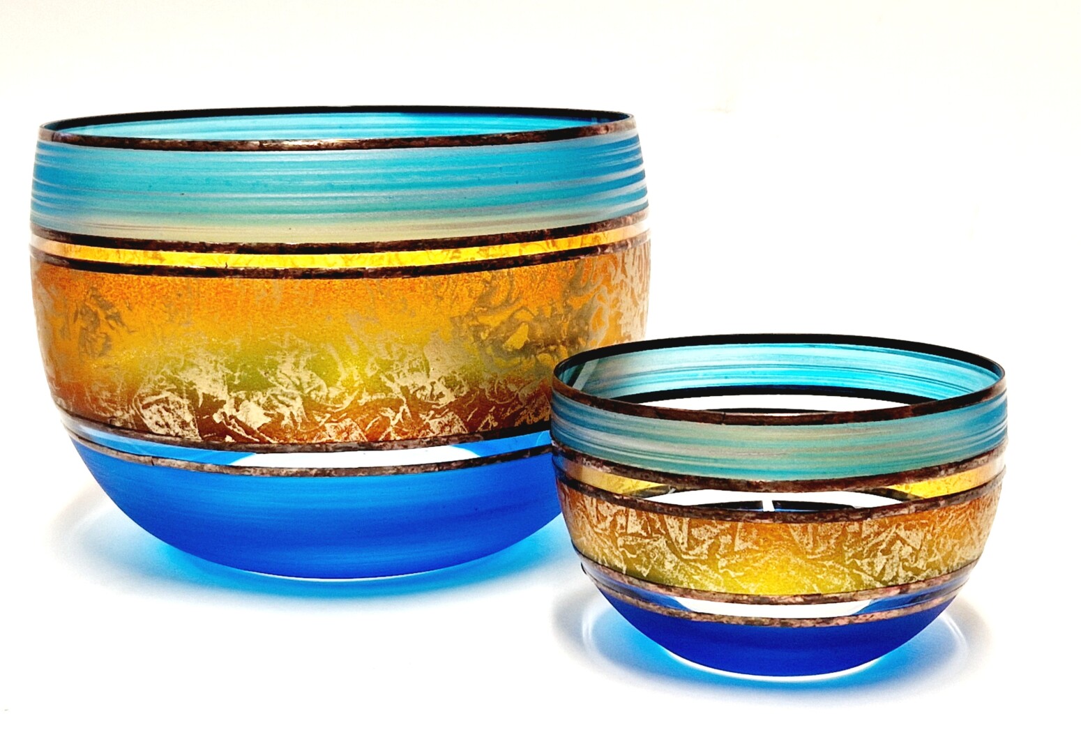 Ručně foukaná miska, dekorováná kovem a barvami . Výrobek je autorsky signován, opatřený certifikátem originality.