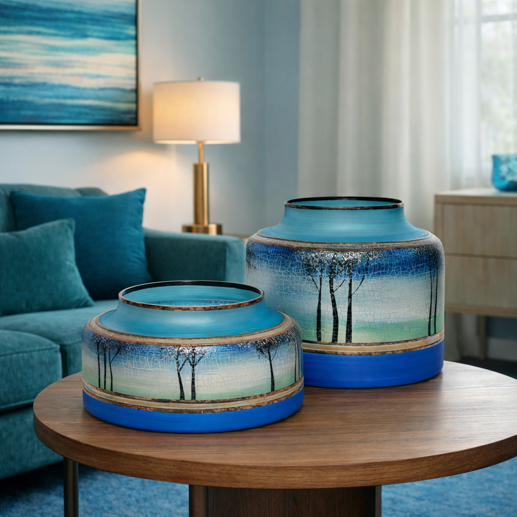 Váza je vysoká 17cm, široká 21cm. Balená v krabici s firemním potiskem. Jedna se o dekorativní sko. Není vhodné do myčky.
