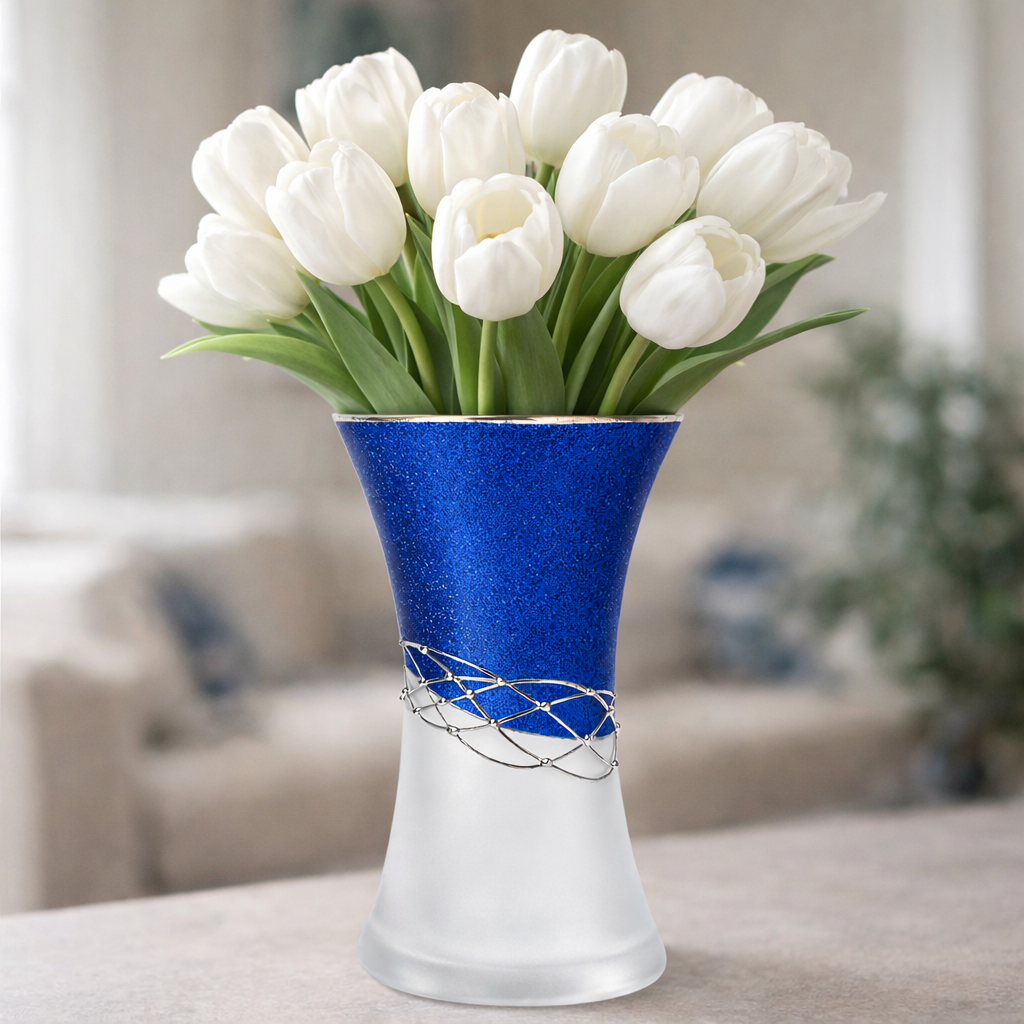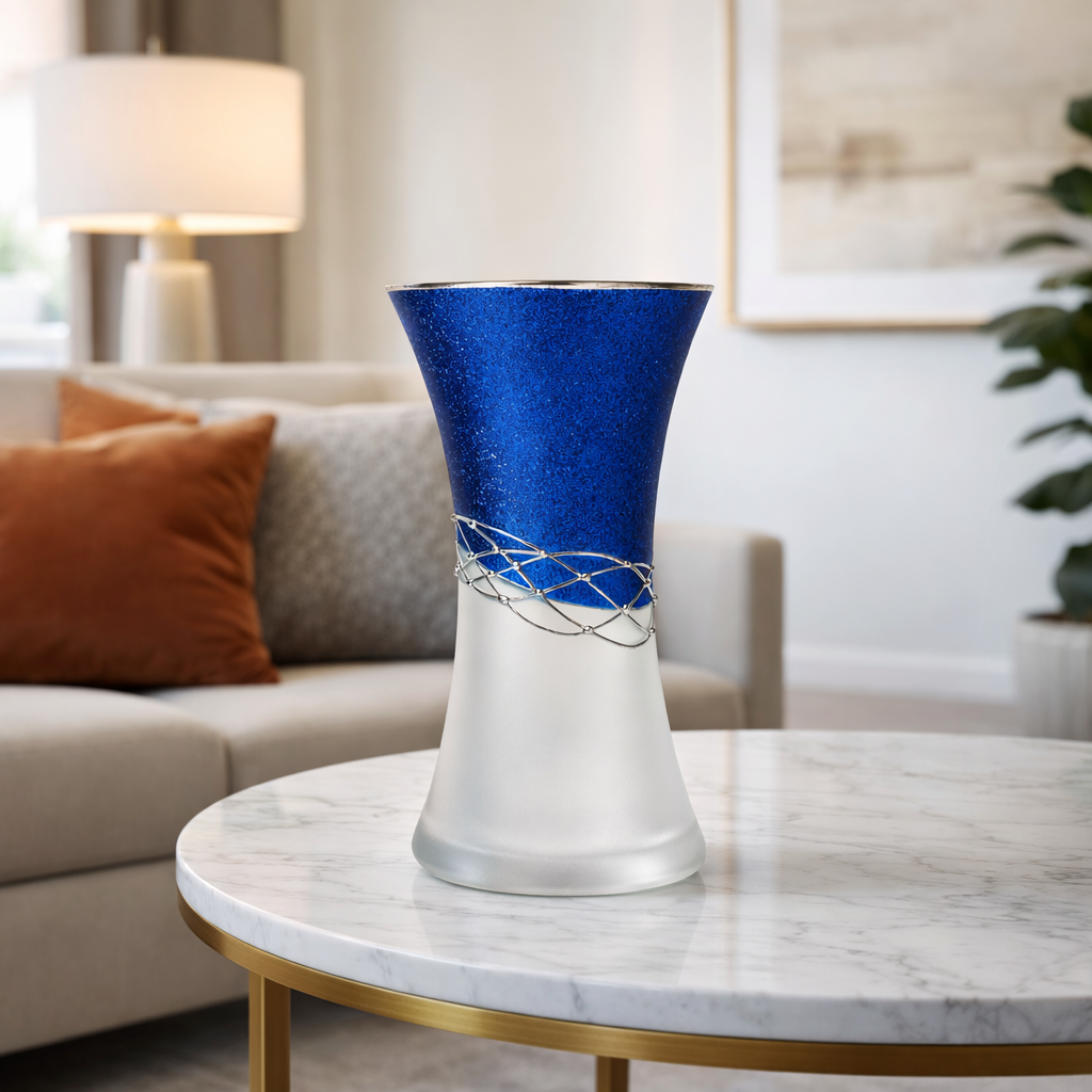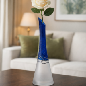 Ručně foukaná váza, dekorováná kovem a barvami . Výrobek je autorsky signován, opatřený certifikátem originality.