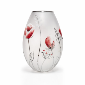 Váza vysoká 26cm. Výrobek je ručně dekorován barvami a kovem, opatřen autorským podpisem, cerifikátem originality. Baleno do firemní krabice s potiskem .