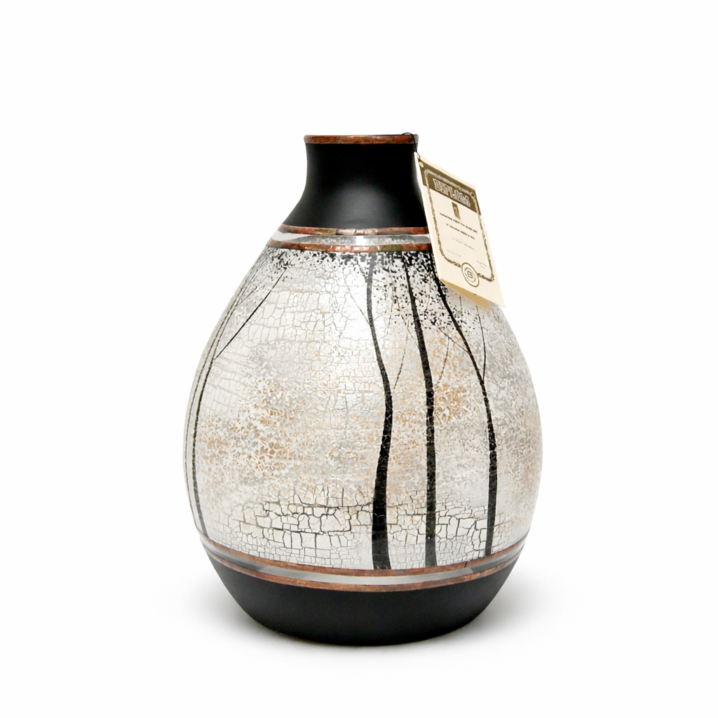 Váza dekorovaná malbou a kovem. Výrobek je opatřen podpisem, a certifikátem originality. Zabalen do krabice s firemním potiskem.