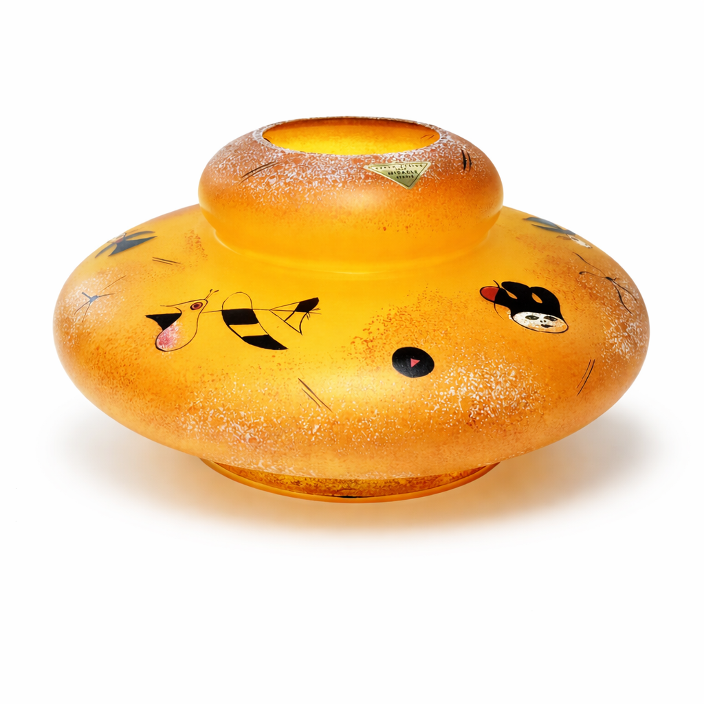 Ručně foukaná váza, dekorováná barvami a kovem. Výrobek je autorsky signován, opatřený certifikátem originality.