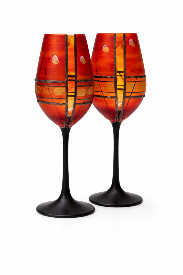 Sklenice na červené víno,ručně dekorované barvami a kovem. Výrobek je autorsky signován, opatřen certifikátem originality.