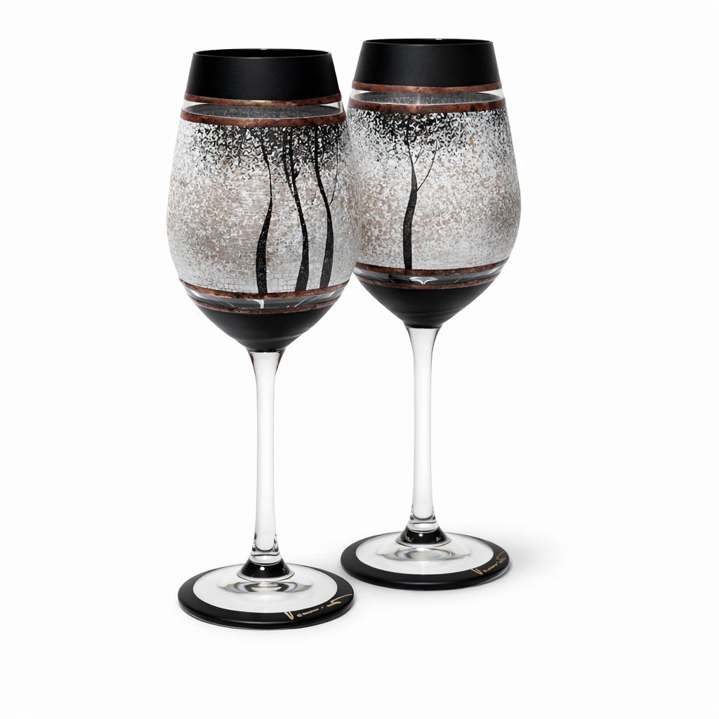 Sklenice na bílé víno,ručně dekorované barvami a kovem. Výrobek je autorsky signován, opatřen certifikátem originality.